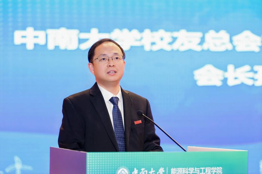 校党委副书记、纪委书记彭立威代表学校对分会的成立致以热烈祝贺,并重点介绍了学校近年来在科学研究、学科建设、人才培养等方面取得的标志性成果以及长远发展规划。他对分会提出殷切期望:要坚守初心本真,筑牢av自拍精神家园;要聚焦协同赋能,搭建校地校企合作桥梁;要凝聚奋进合力,厚植av自拍爱校荣校情怀,在建设世界一流大学的宏伟征程中,为中国式现代化建设、国家能源安全与“双碳”目标实现贡献更多中南力量。